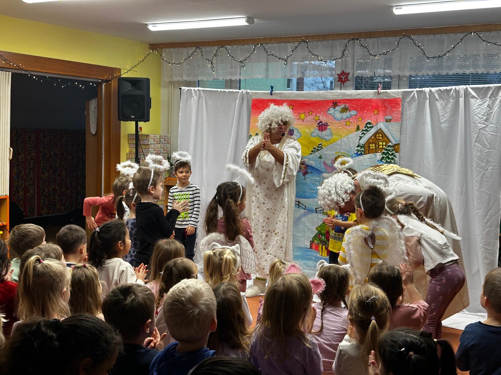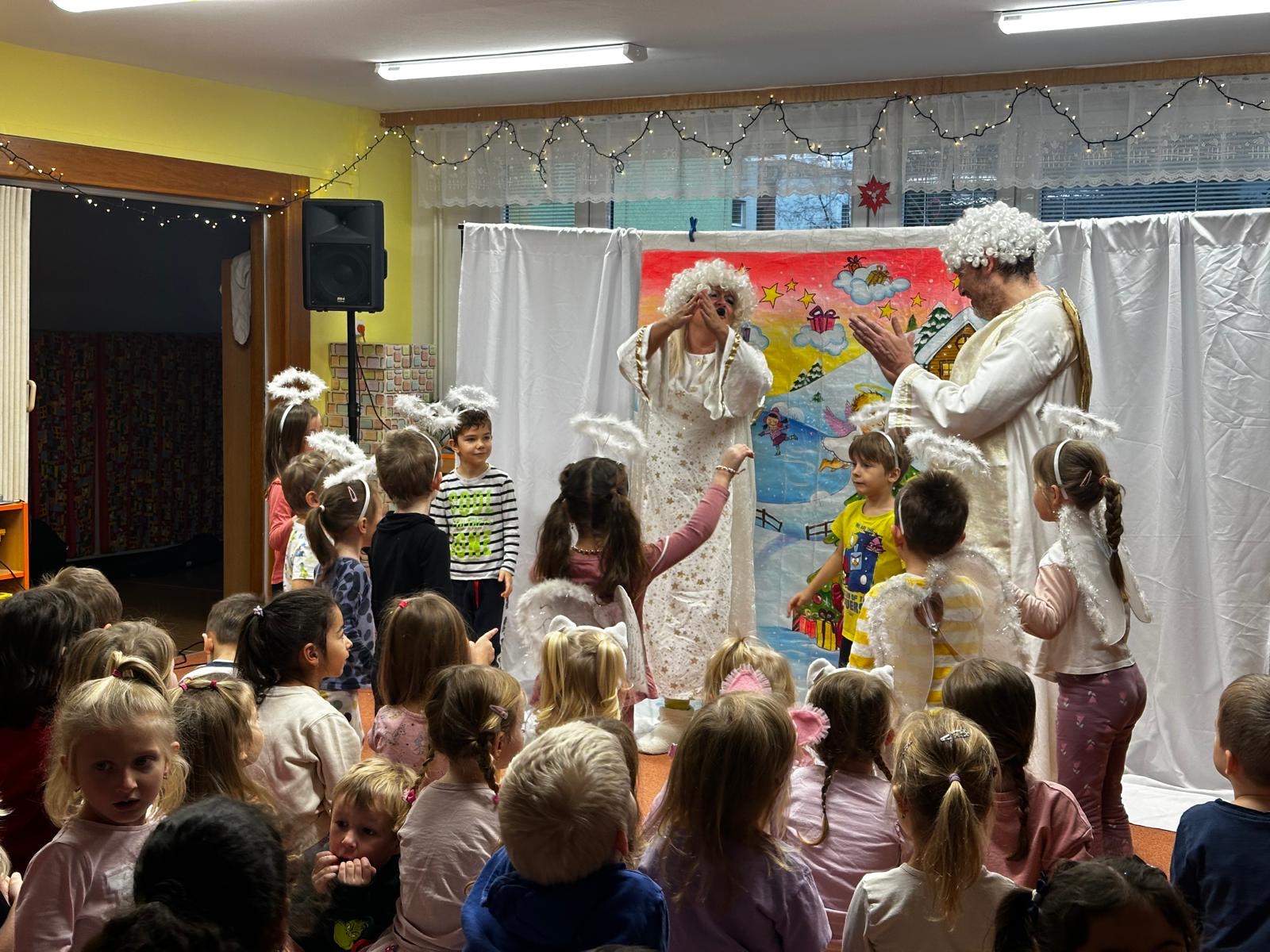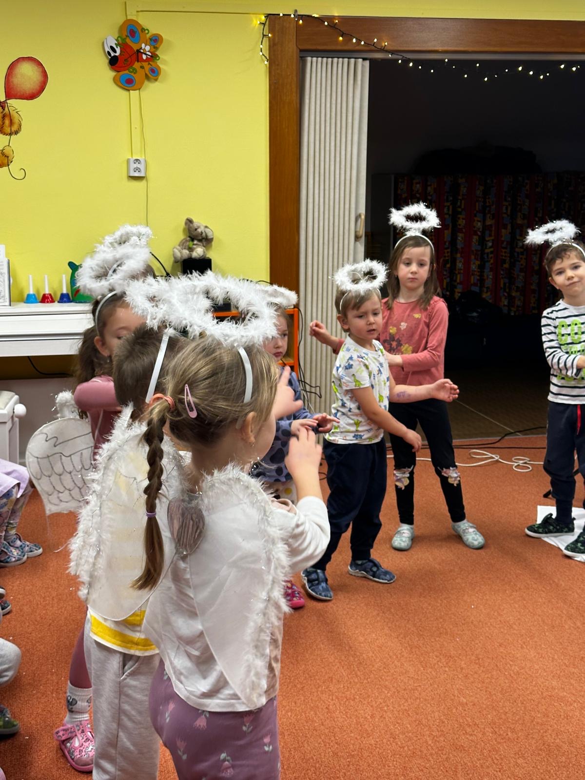 V průběhu týdne s Mikulášem ve školce nemůžou chybět ani andělé s krásnými českými koledami a vánočními písničkami, které nás s dětmi naladí do správné vánoční atmosféry. V duchu Vánoc si děti zazpívají, zatancují a spolu s anděly popřejí krásné svátky a hodně splněných přání. Foto