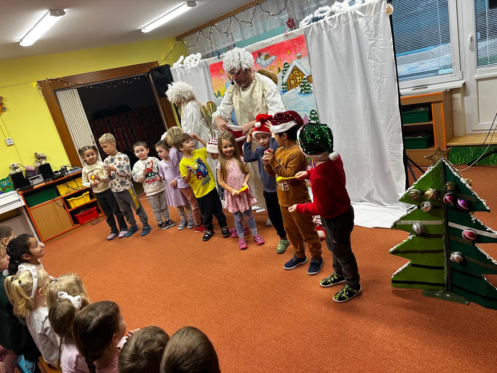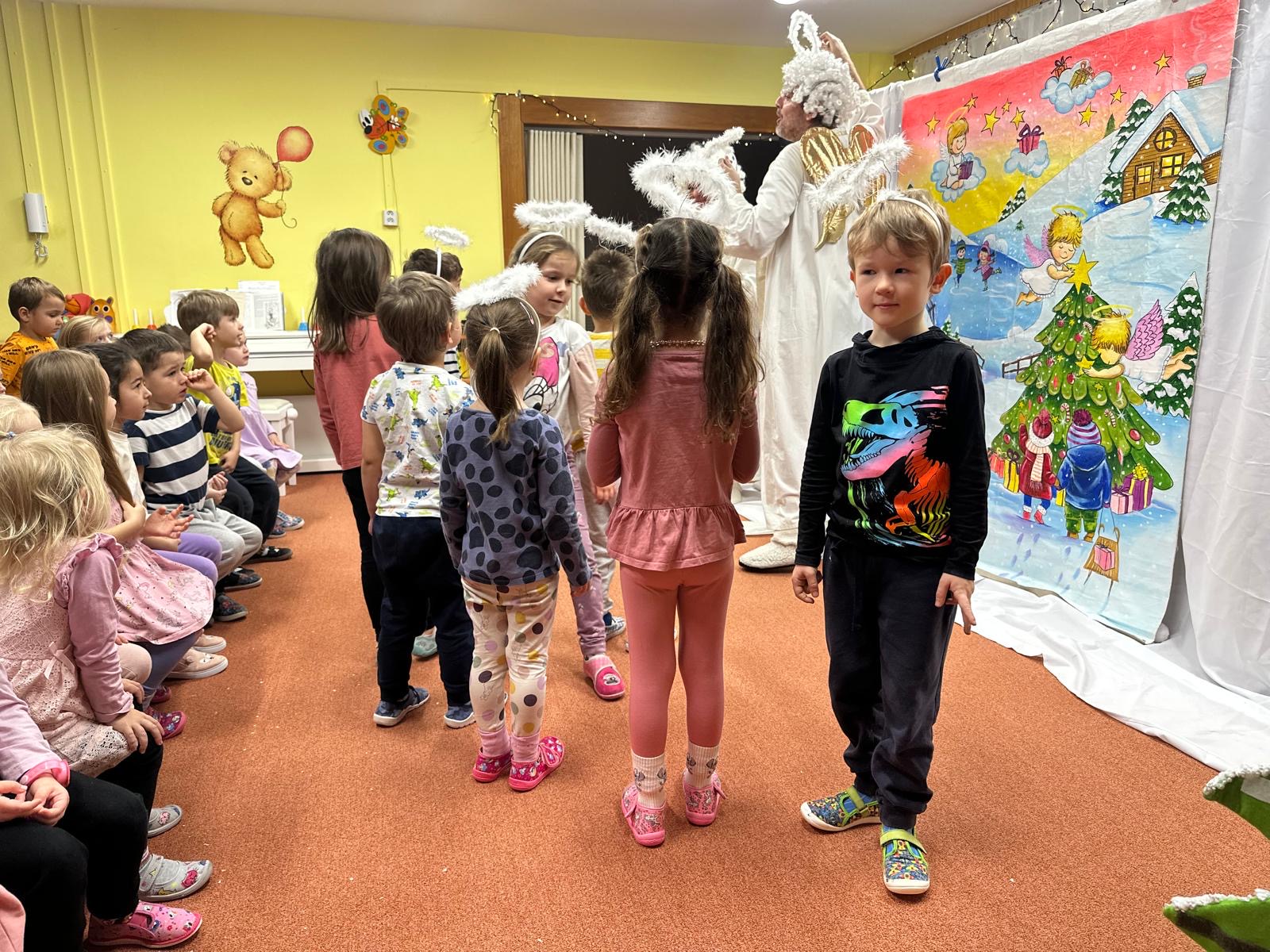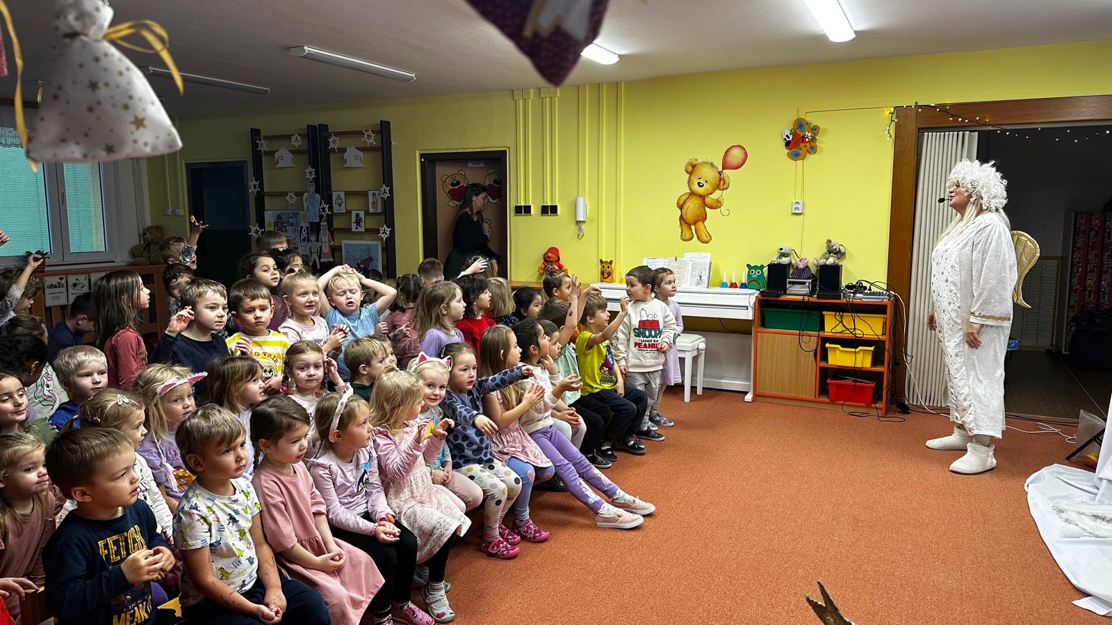 V průběhu týdne s Mikulášem ve školce nemůžou chybět ani andělé s krásnými českými koledami a vánočními písničkami, které nás s dětmi naladí do správné vánoční atmosféry. V duchu Vánoc si děti zazpívají, zatancují a spolu s anděly popřejí krásné svátky a hodně splněných přání. Foto