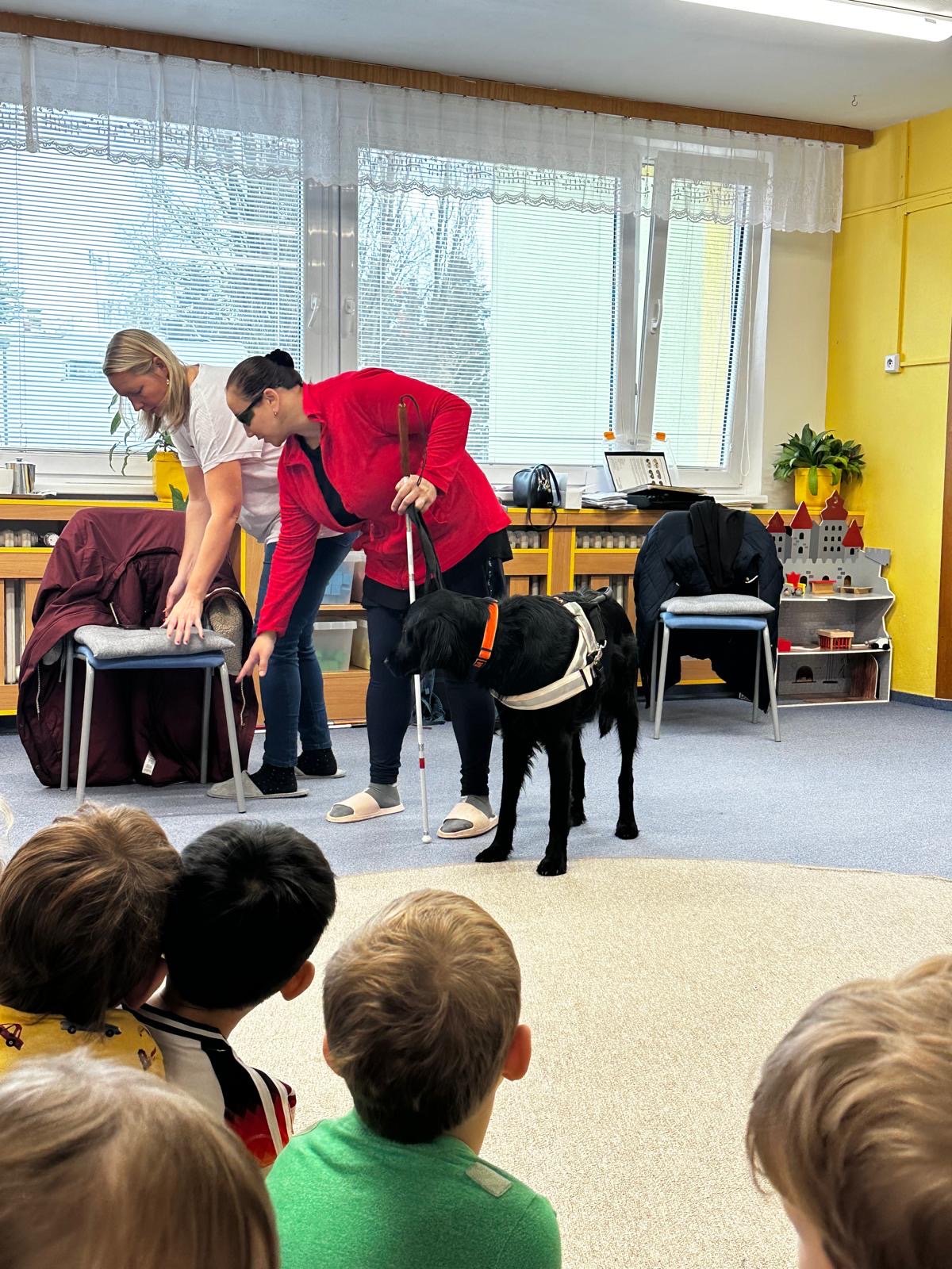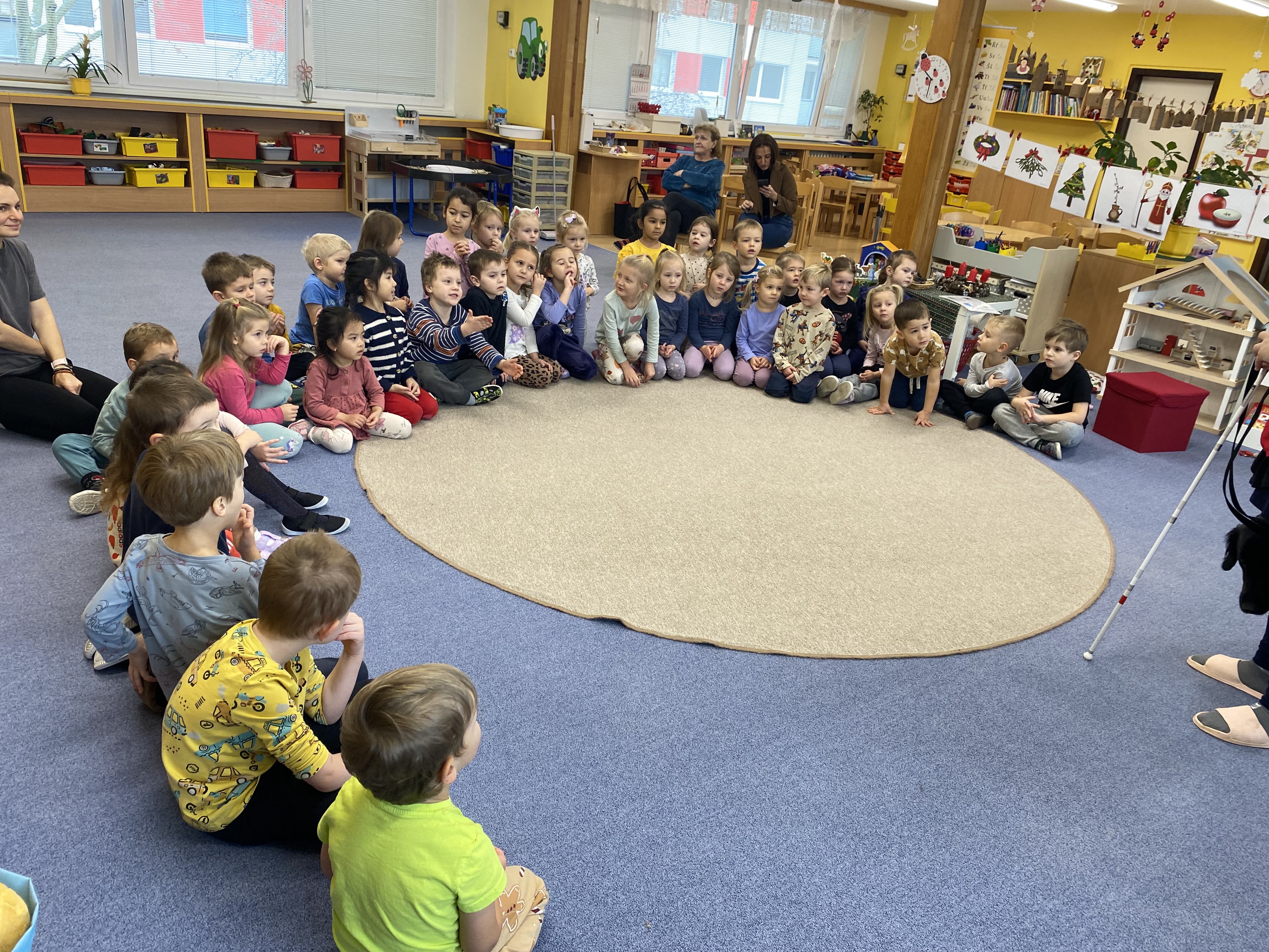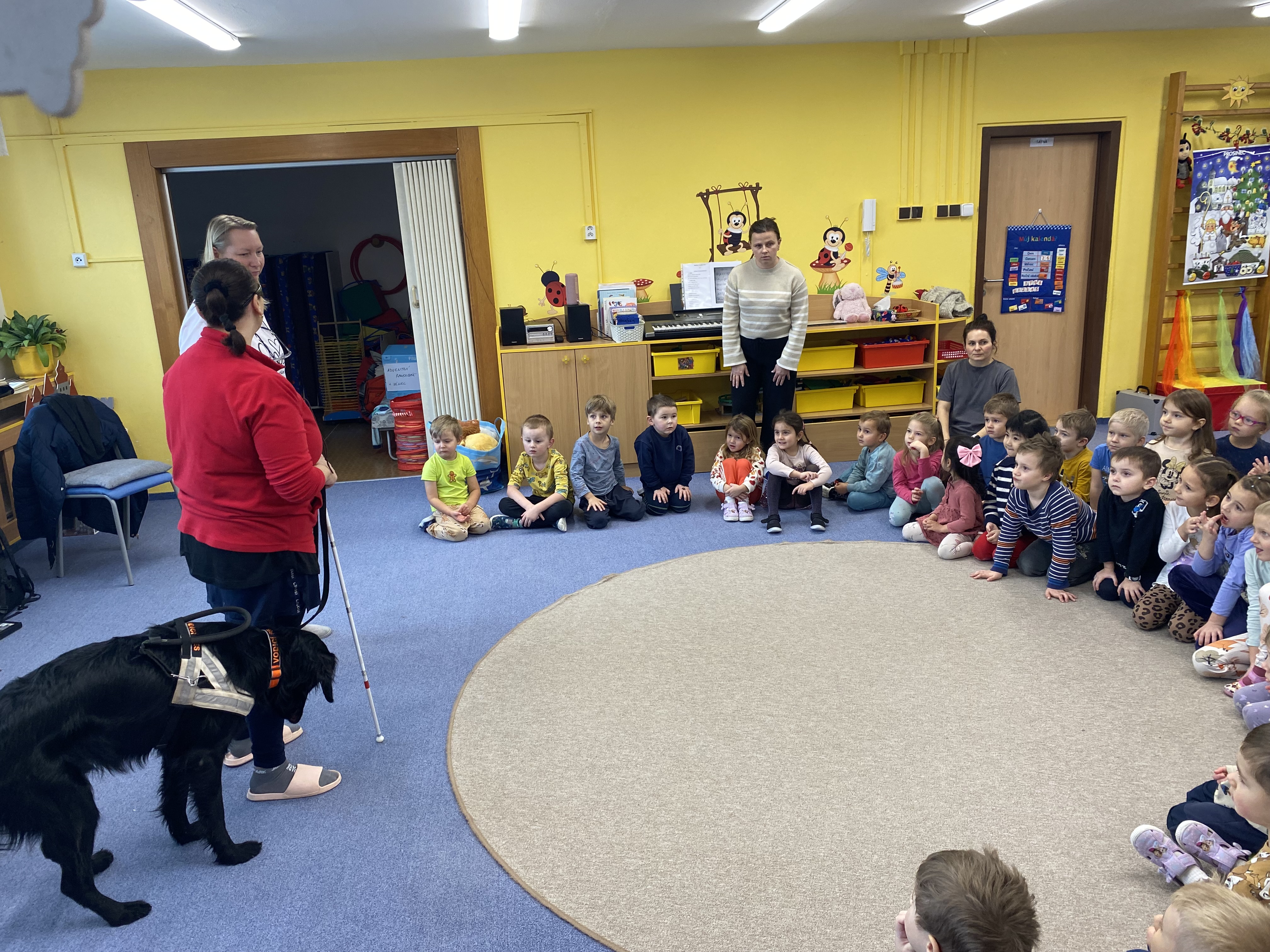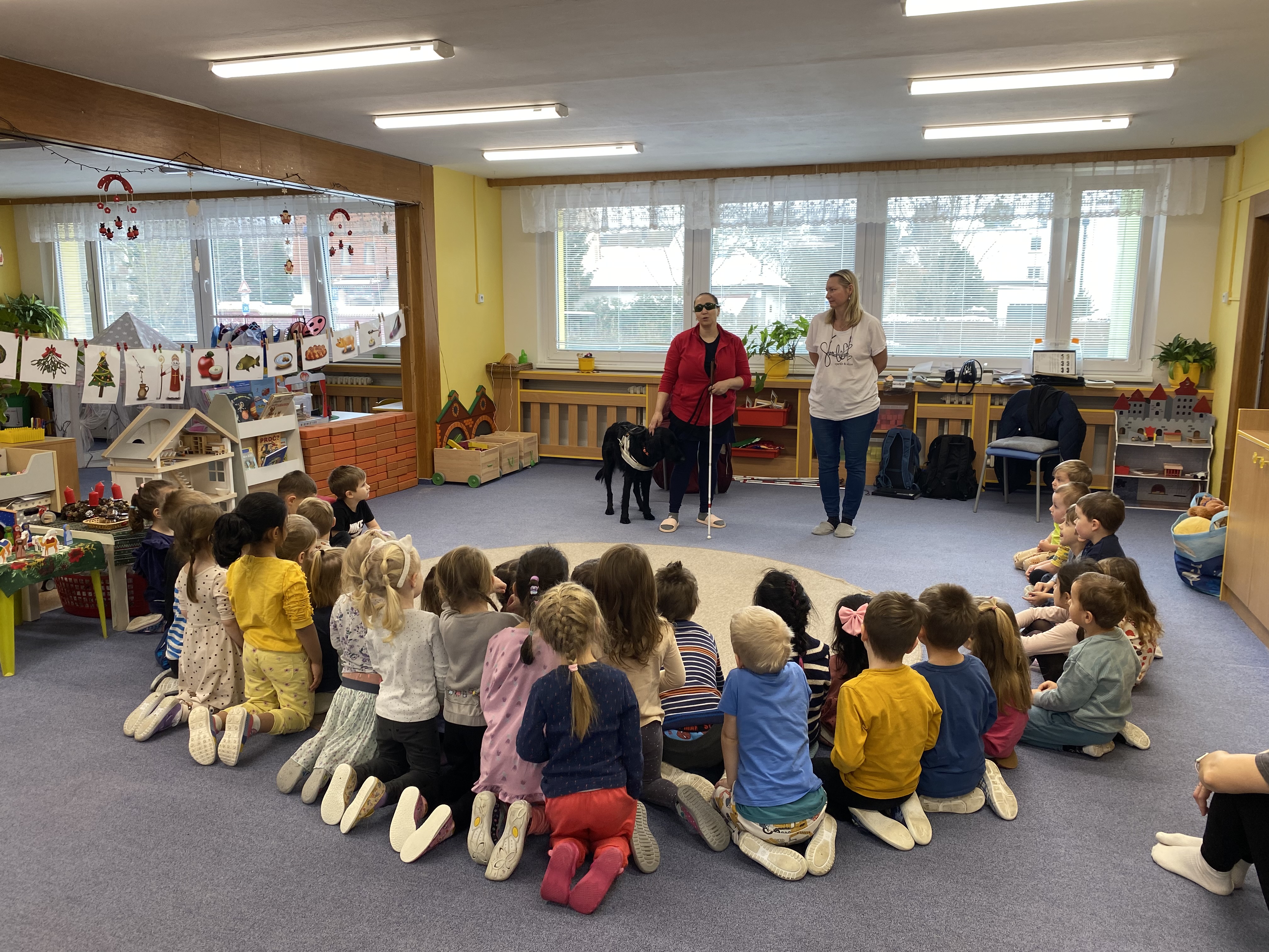 Do naší školky zavítala Beluška s vzdělávacím programem, který hravou a interaktivní formou seznamuje děti se zrakovým postižením. Děti si pod vedením lektorů vyzkoušely simulaci zrakových vad, chůzi s bílou holí a práci s vodicím psem. Přečetly si pohádku v Braillově písmu a naučily se, jak se k nevidomým lidem správně chovat.