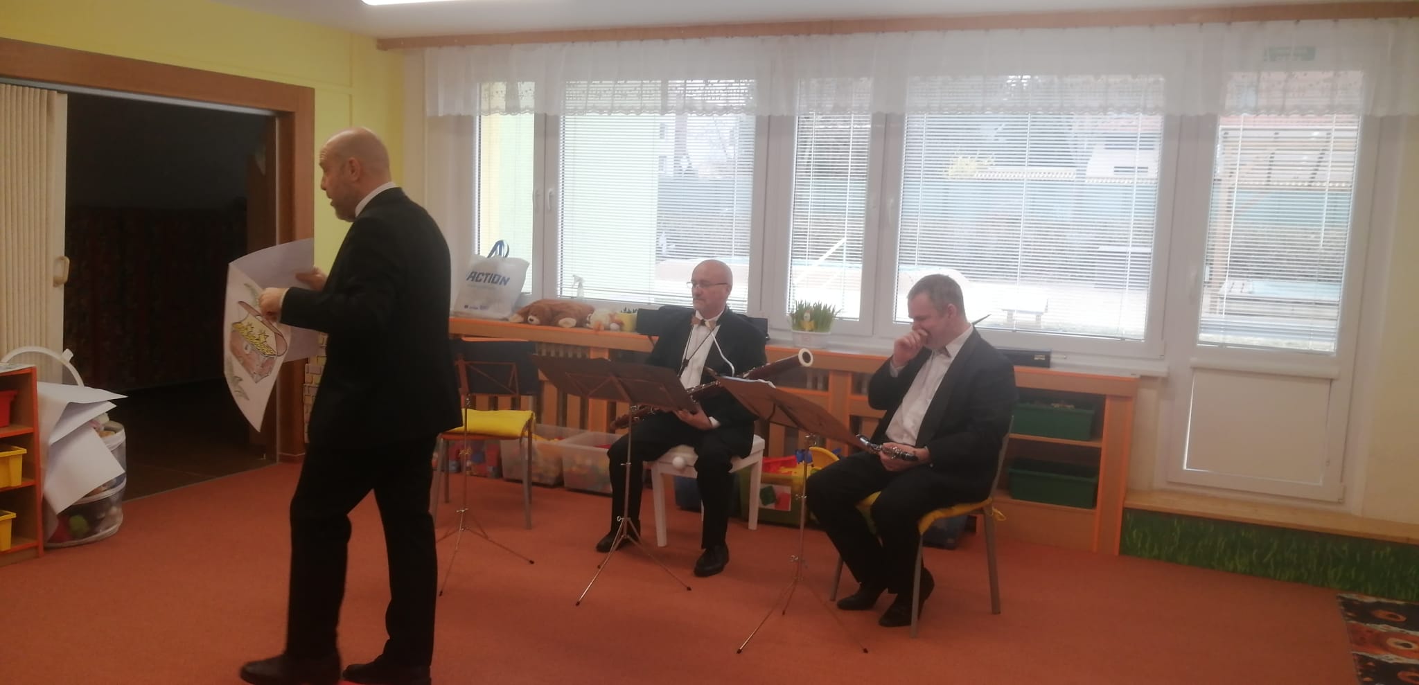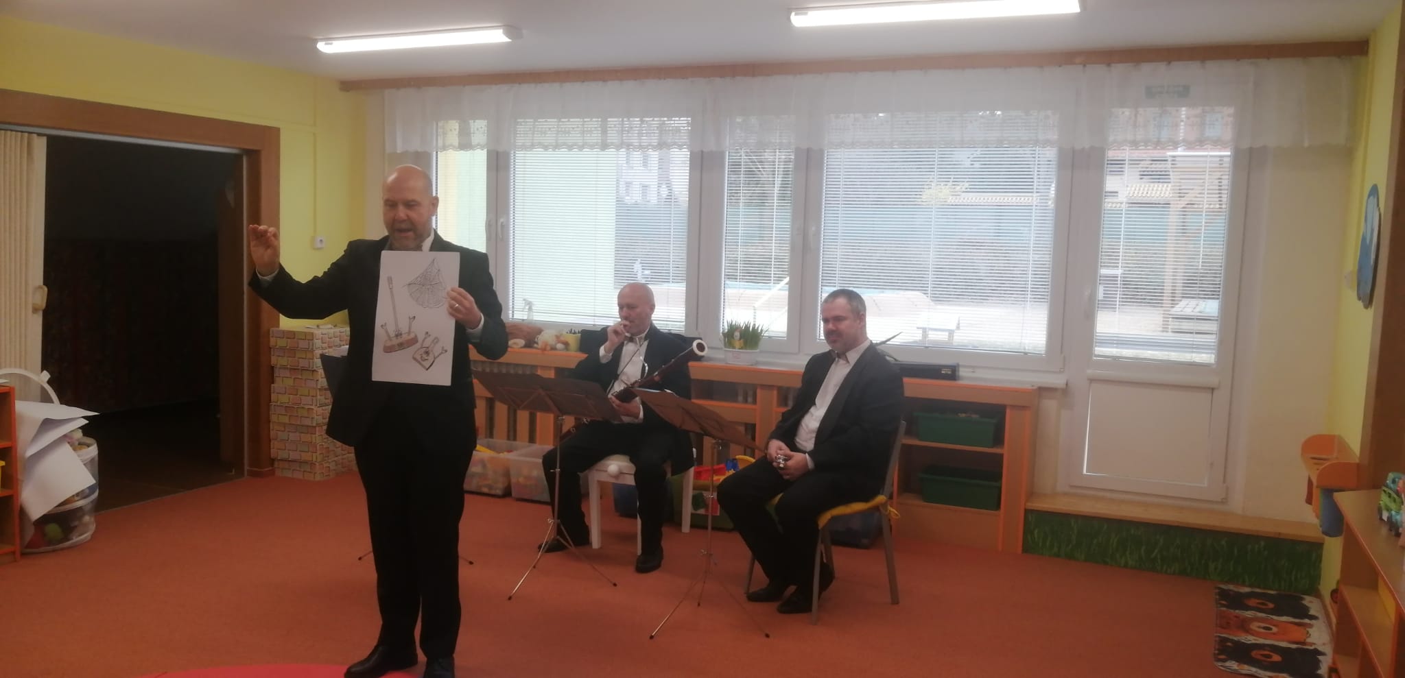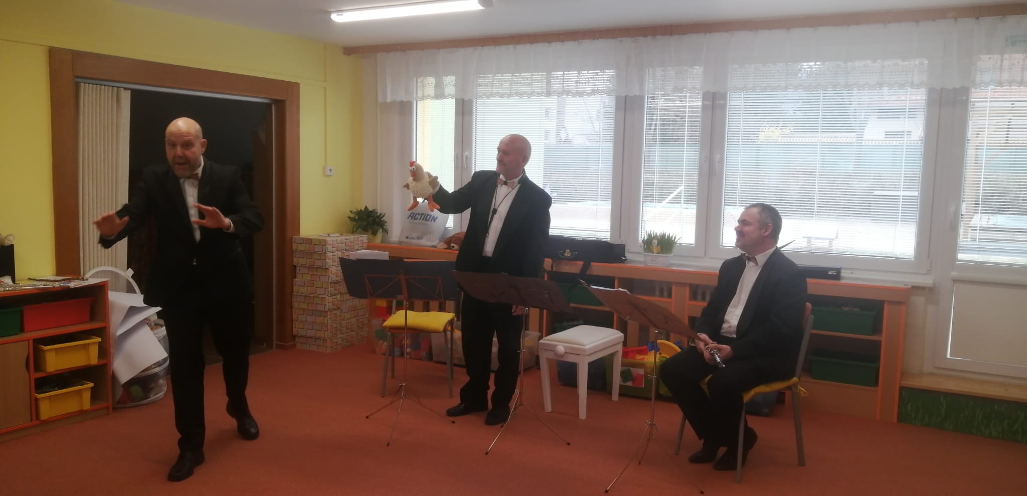 Ve středu 1.4. za námi zavítalo hudební trio s krásným VELIKONOČNÍM programem. Hudebníci nás seznámili se základy slušného chování na koncertech. Veselou, hravou formou jsme si společně zazpívali, děti se zapojily do hudebních hádanek i rytmizace. Vystoupení jsme si všichni velice užili.